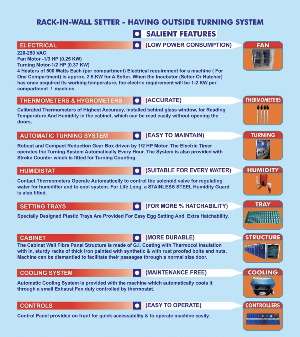 We assure that we can offer, One of the Most Advance Range of Setters and its associate Equipments which are normally available and after using these and adapting the latest Technology for the best result in the Poultry Industry. Karamsa's Products are such designed to be long lasting and energy efficient.